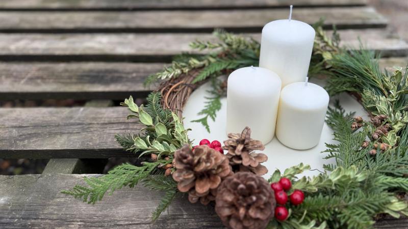 Create a festive centerpiece perfect for your holiday table. In this hands-on workshop our design experts will teach you how to embellish a 12" grapevine wreath with fresh greens and accents. This workshop also includes the candles and tray to complete the look.